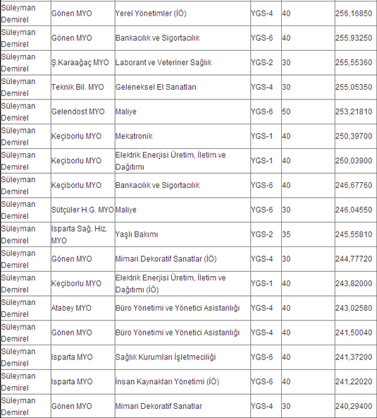 Pek çok öğrenci süleyman demirel üniversitesi taban puanları.